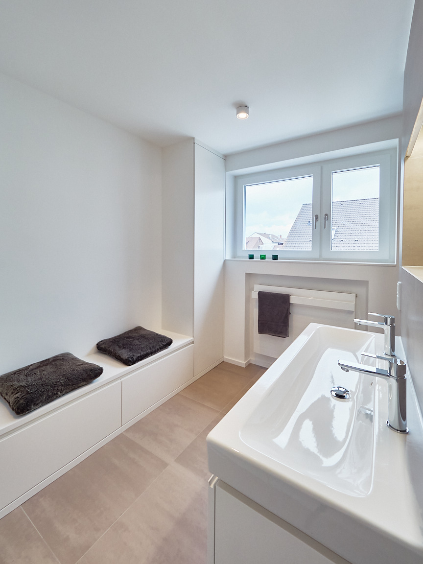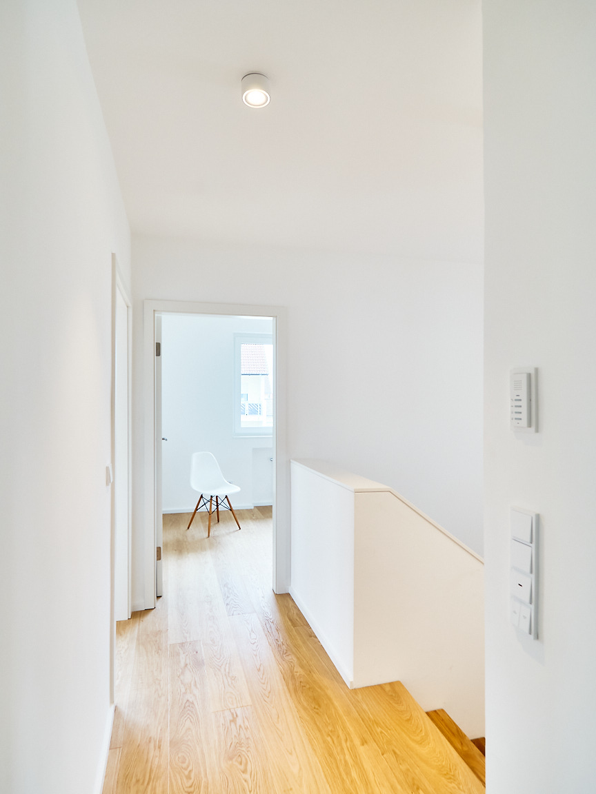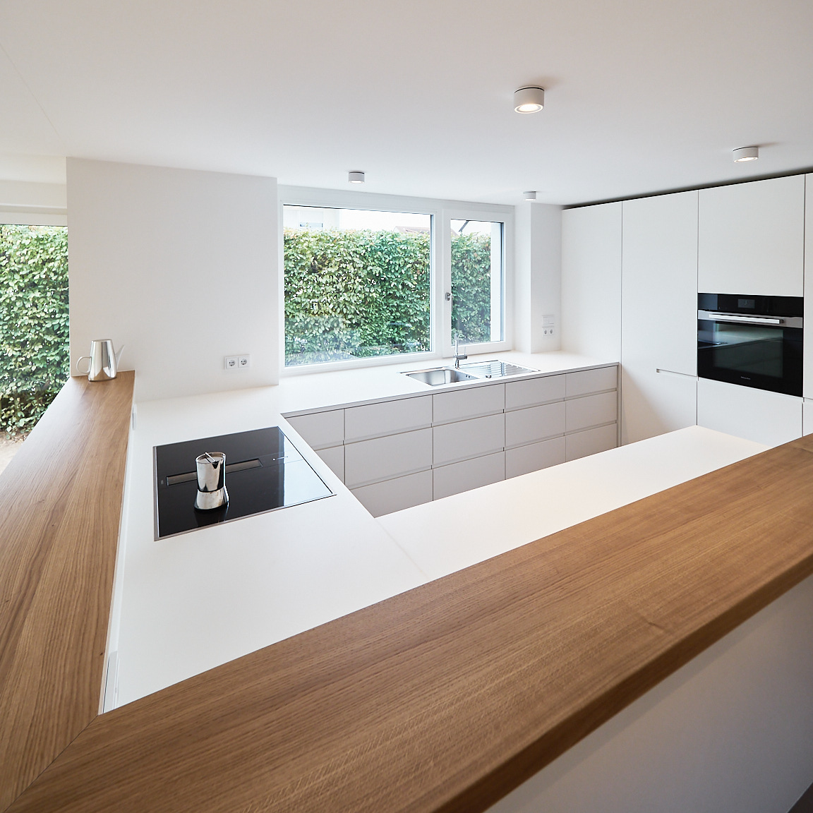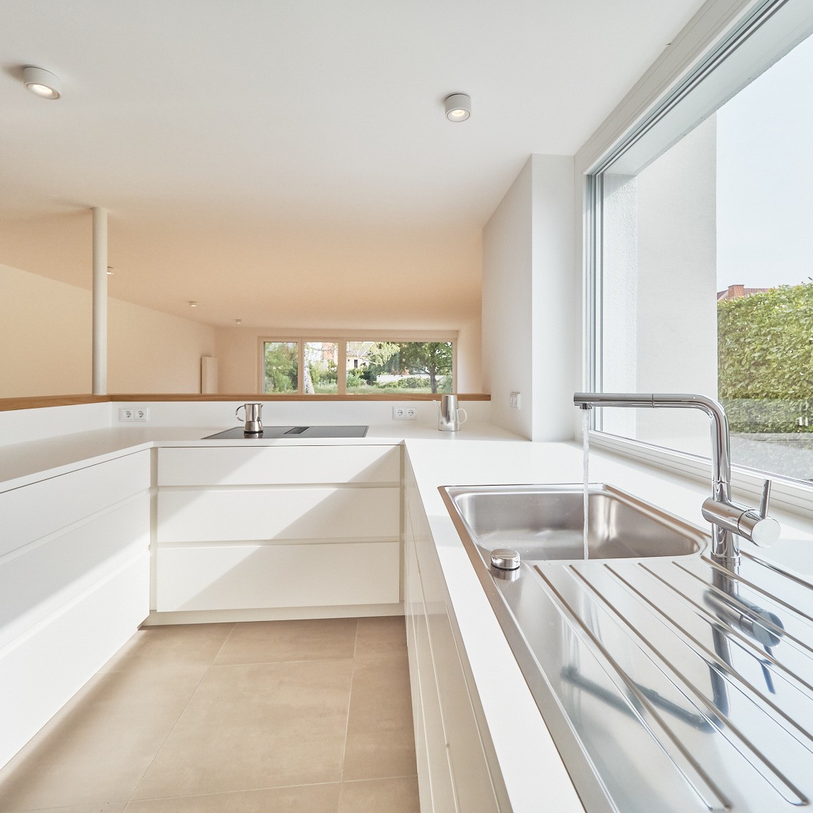 Dem Bestandsgebäude aus den 60er Jahren fehlte ein großer Wohn- und Essbereich. Ein einstöckiger Anbau auf Gartenebene erfüllte diesen Bauherrenwunsch. Die zum Wohnbereich offene Küche, auf erhöhtem Bestands-Niveau, ist die Verbindung zwischen Bestand und Erweiterung. Auf dem Anbau erhielten die Kinder eine Holzterrasse. Der Bestand wurde komplett saniert und energetisch aufgewertet.