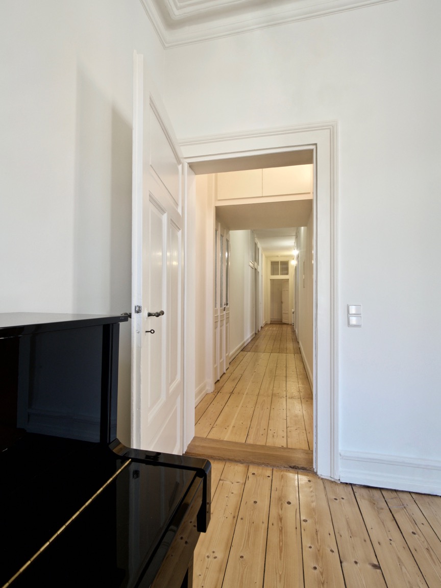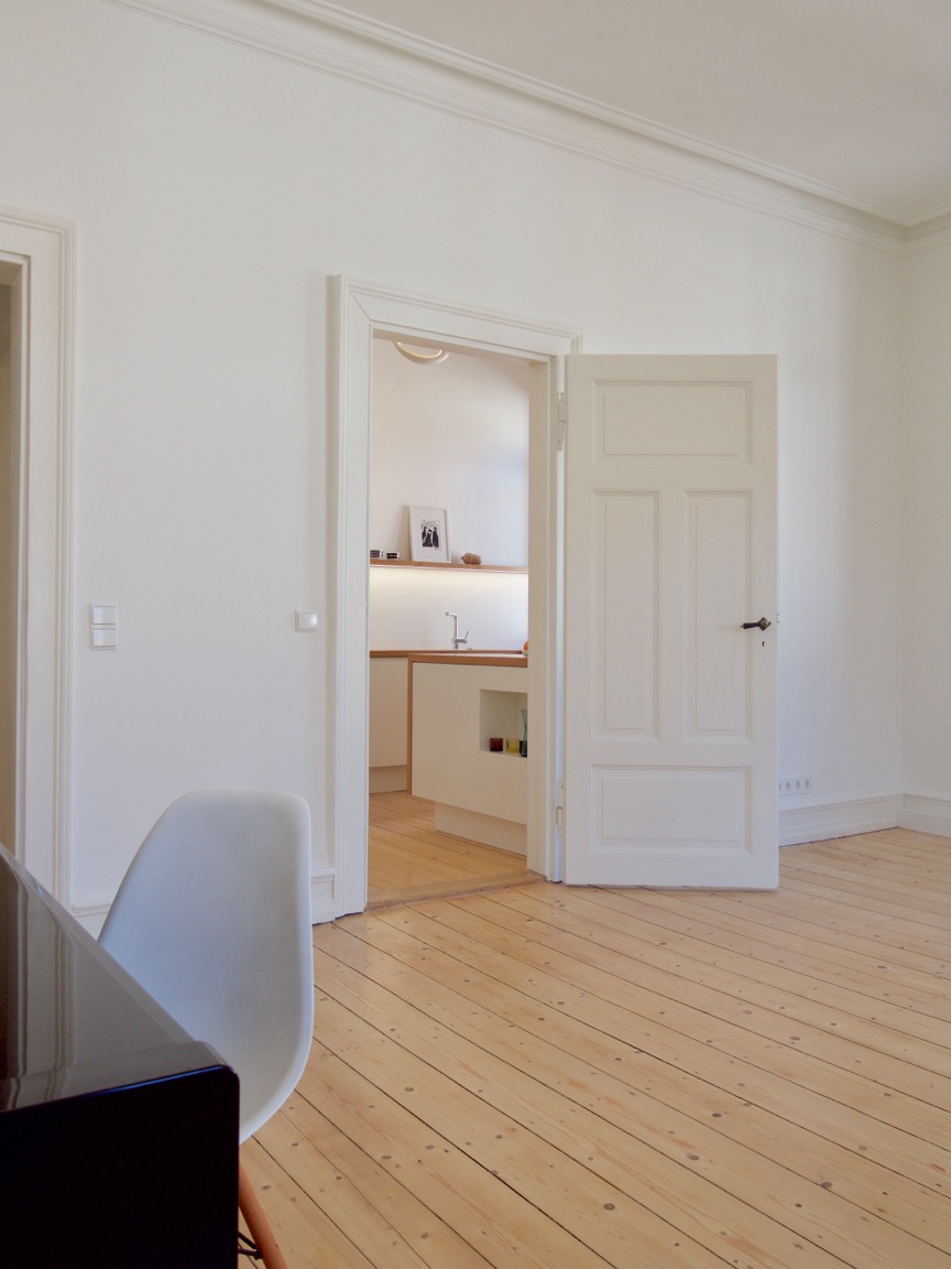 Wohnung und Fassade stehen unter Denkmalschutz, weswegen nur minimale Eingriffe in die Substanz möglich waren.